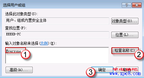 键入 Everyone 后一路按“确定”退出。