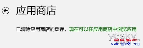 在我们执行命令之后,Win8系统会进入应用商店,等缓存清楚之后会给出下面的提示“已清除应用商店的缓存”。