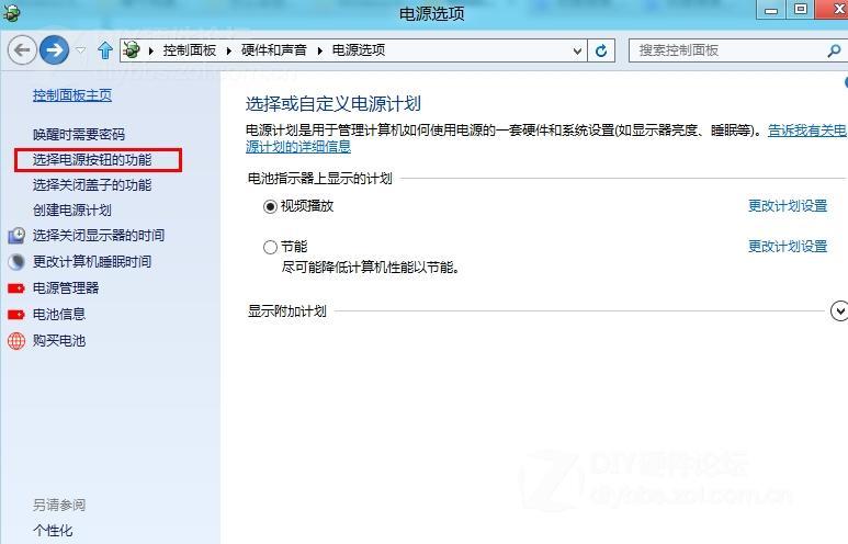 2、弹出的“电源选项”界面,如下图所示,点击“选择电源按钮的功能”;