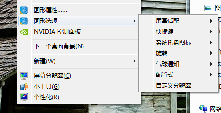 步骤一:如果笔记本在ghost win7安装的时候已经配置了核心显卡驱动程序,那么这个设置就是最简单的,只需要在桌面的鼠标邮件菜单中选择“图形选项”,然后进入“旋转”的子菜单之后选择“90度”这一个选项,那么电脑的屏幕就会自己旋转90度了;