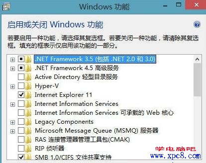 点击后弹出“启用或关闭Windows功能”对话框,用户在对话框的程序列表里就可以看到系统自带的全部功能,通过勾选或者取消勾选,达到开启和关闭系统功能的目的,而且,当用户勾选了一些系统自带的特殊程序,该类程序还能自动在开始屏幕上生成快捷方式图标,像微软的一款虚拟化产品“Hyper-V程序”。