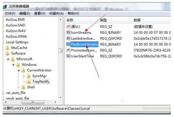 删除下面“IconStreams”和“PastIconsStream”这两个键值。然后重启你的电脑,这样通知区域内的失效图标就会不见了。
