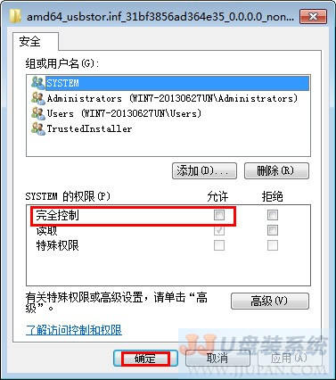 小编提示:如果执行到第三步时,有些项删除不了的,可以右键单击选择“权限”,进入权限设置选择允许“完全控制”就可以了。如图: