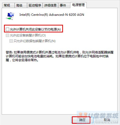 2、在如上图中点击“配置”按钮,进入如下界面。单击“电源管理标签”,将 “允许计算机关闭此设备以节约电源” 取消勾选。