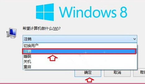 实际上,在win8系统中,用户只需要返回到桌面的界面中,在键盘上同时按下组合按键Alt+F4,在弹出的界面中就可以选择“注销”了。