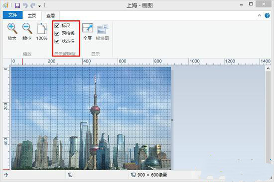 如果查看图片的过程中需要知道图片局部尺寸的大小,那么就在“标尺”和”网格线“功能前面打上小勾。