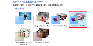 4.设置完成之后,咱们就可以重新返回到个性化设置窗口之中,将刚刚下载下来的主题设置为全景壁纸了。