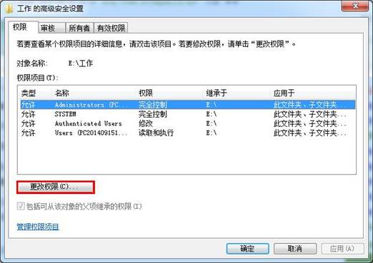 3、接着点击权限标签里的“更改权限”按钮,如下图所示: