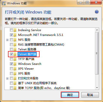 2015-05-07win7系统telnet客户端安装后不能使用的解决方法