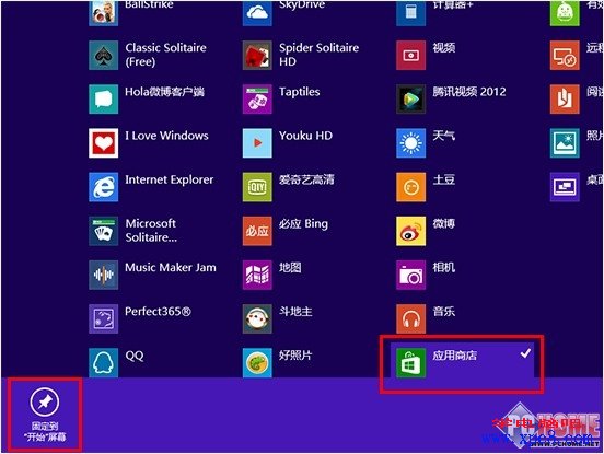然后选取我们想要找回的图标,点击左下角的“固定到‘开始’屏幕”即可。同样非常简单,但是这种方法无法恢复被删除的应用。