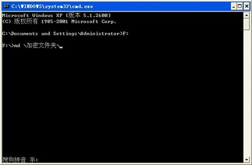 3、然后输入:md 加密文件夹回车 注意(加密文件夹为任意字符)为任意字符