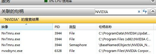 3.在关联句柄中输入我们想要删除的文件或者是文件夹的名字,下面的列表中就会自动搜索出该文件,咱们直接选中该文件,然后右键点击,选择结束进程即可。
