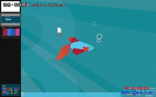 技巧提示:还可接着将鼠标沿着该应用程序小图左侧向下移动,还可出现屏幕左侧边栏。在左侧边栏中,可以显示在开始屏幕中其他已打开的应用程序预览小图,最下方是开始屏幕的预览小图,点击即可快速切换至该应用程序。