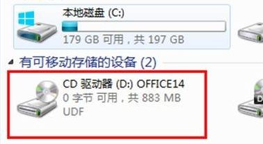 2.接下来咱们双击打开计算机,然后在可移动存储设备中便会出现一个光驱盘符,咱们直接双击该盘符,该盘符就可以像文件夹一样被打开,进入之后咱们就可以看到里面所包含的文件了。