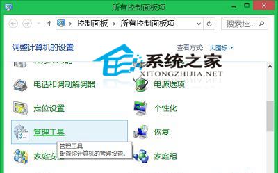 第二步、在控制面板大图标查看方式下,找到并点击“管理工具”。