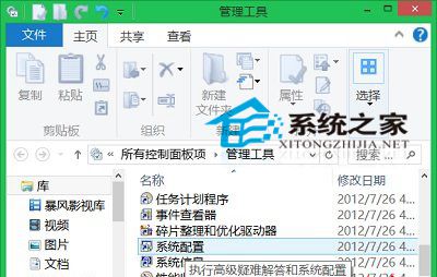 第三步、在“管理工具”界面,在右侧窗口中找到并双击“系统配置”就可以了!