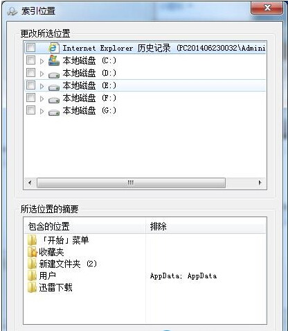 步骤三:回到修改索引位置的页面中,你就会发现刚所包含的位置不见了,如果ghost win7中有好几个索引路径,那么就需要你按照上面的方法逐一将它们关闭掉直到主界面上所包含的位置全不见;