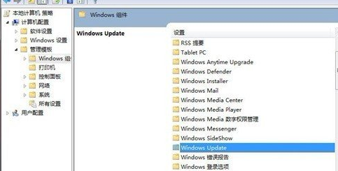 2.在组策略编辑器窗口中,咱们在左侧菜单中定位找到管理模板-Windows组件,然后在右侧的窗口中找到文件windows update并双击该文件。