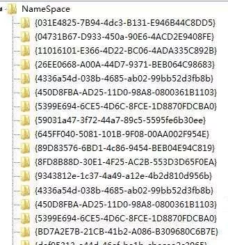 3.导出的reg文件是比较多的,但是只有两个文件时咱们需要的,也就是{450D8FBA-AD25-11D0-98A8-0800361B1103}和{645FF040-5081-101B-9F08-00AA002F954E}文件,其余的文件,咱们全部删除就是了。