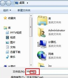 3.操作完成之后,咱们将该文件另存命名为“hh.reg”文件,记住,这里一定要加入.reg的后缀才可以。