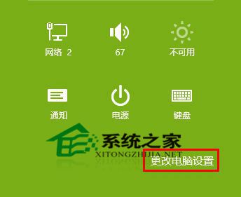 按下Win+I组合键,打开Charm栏设置项目,点击底部“更改电脑设置”。