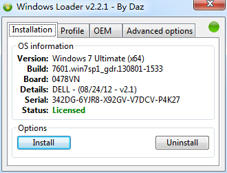 Windows Loader是一个很不错的 Windows7/2008激活工具,外国牛人的作品,推荐给安装了Windows7/2008 R2 的朋友试试,如果你不想刷BIOS激活,那么可以试试这个激活工具,它会将你的电脑模拟为某个品牌的电脑进行激活。
