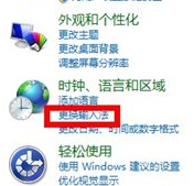 2.在控制面板的界面中找到时钟、语言和区域这一项,然后点击下方的更换输入法。