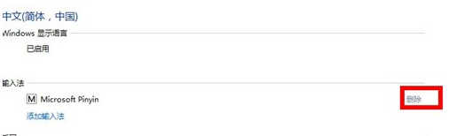 3.接下来的界面中,咱们就可以看到目前win8电脑中自带的所有的输入法。在每个输入法的后方,都有一个删除的按钮,大家不需要哪个输入法,就直接点击后方的删除键即可。