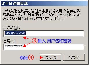 输入本站提供的NOD32注册码③ - 点击确定④ 如图2