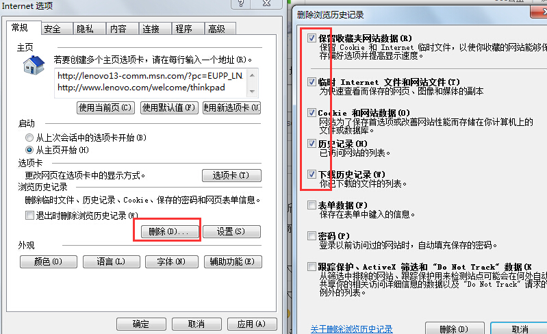 还是在Internet选项中,勾选删除临时文件,然后如下图中进行勾选即可。