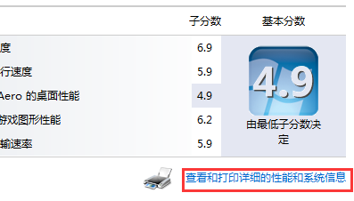 3.接下来点击右侧窗口中的“查看和打印详细的性能和系统信息”,之后咱们就可以在窗口的电脑系统最后的系统类型一栏中看到自己的电脑是否支持64位系统了。