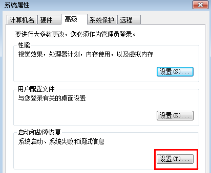 2.在打开的计算机属性窗口中,咱们点击左侧的高级系统设置按钮,然后在打开的窗口中将界面切换到高级这一栏,点击最后的“启动和故障恢复”下的设置按钮。