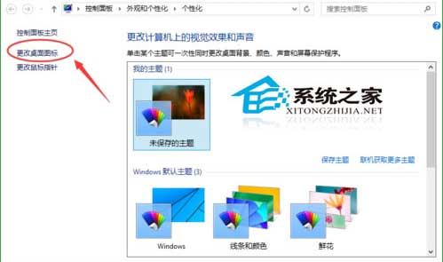 2.点击左侧的更改桌面图标。