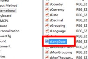 2.在注册表编辑器窗口中,咱们在左侧菜单中依次展开HKEY_DURRERT_USER/Control panel/international,然后在右侧菜单中找到并双击打开SLongDate选项。