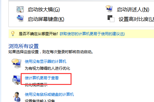 2.接下来,咱们扎到浏览所有设置下方的“使计算机更易于查看”并单击进入。