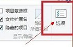 3.进入查看的界面之后,我们就可以发现文件夹选项设置的功能差不多都显示在这里了,想要让咱们界面中显示的文件夹选项功能再次显现出来其实也是很简单的。咱们直接在界面的最右侧的位置找到选项按钮并点击。