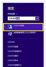 依然是在我们的Win8.1界面里面,其实任何一个页面都可以操作这个方法,直接使用Windows + Q快捷键打开了右边的搜索对话框,然后输入“远程桌面”这几个字符,直接点击确定就可以找到我们所要远程的程序了。如下图所示: