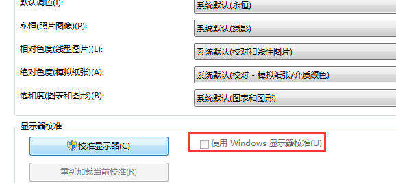 步骤三:我们点击‘校准显示器“的按钮,然后把默认的显示器校准,这个项目前方的勾选项取出,然后点击“确定”进行保存。