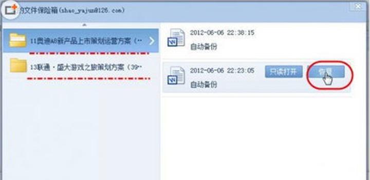 2、当自己发现文件丢失的时间,只要点击“办公空间”标签,再单击“浏览文件保险箱”选项的话,就可以找到那个日期的文件了,而且再右边的窗口里面还能够显示出来具体的保存时间,之后如果需要回复的话直接在文件后面点击“恢复”按键就可以了。