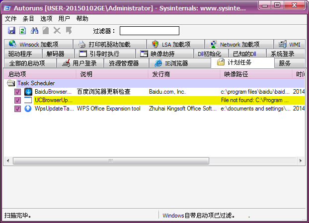 2017-03-07超强启动项管理AutoRuns32位/64位中文版 V13.7绿色单文件汉化版