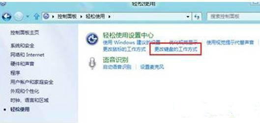 2、“轻松使用设置中心”里面直接单击“更改键盘的工作方式”;