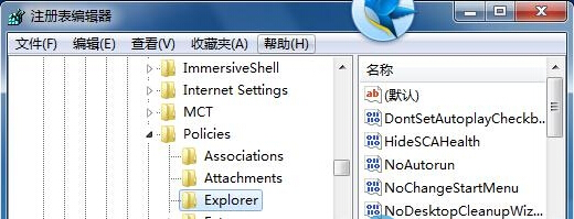 步骤二:在win7系统的注册表编辑器中,按照这个顺序来打开所需要编辑的键:HKEY_CURRENT_USER Software Microsoft Windows CurrentVersion Policies Explorer;拉在右侧键值窗口中新建二进制值,再更名为NoPropertiesMyComputer。