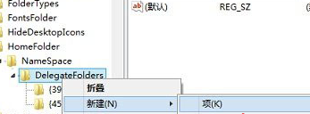 3.在打开的注册表编辑器窗口中,咱们依次在左侧的菜单中展开HKEY_LOCAL_MACHINESOFTWAREMicrosoftWindows CurrentVersionExplorerHomeFolderNameSpaceDelegateFolders,然后右键点击DelegateFolders选项,选择新建-项,然后将该项命名为{031E4825-7B94-4dc3- B131-E946B44C8DD5}。