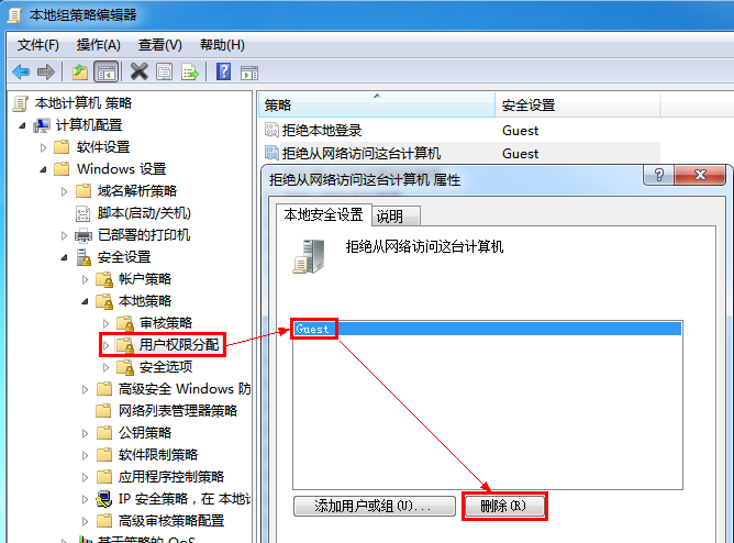 3、到这里,网络方面的问题解决了,剩下的就是权限的问题。我想玩过共享的人都该知道,有种共享方法叫做匿名共享,就是你输入共享路径,就可以直接打开共享文件夹,要达到这个效果,你需要开启GUEST来宾用户,但是默认情况下,为了安全起见,GUEST用户默认都是禁用状态,所以我们需要把GUEST启用,操作方法如下: