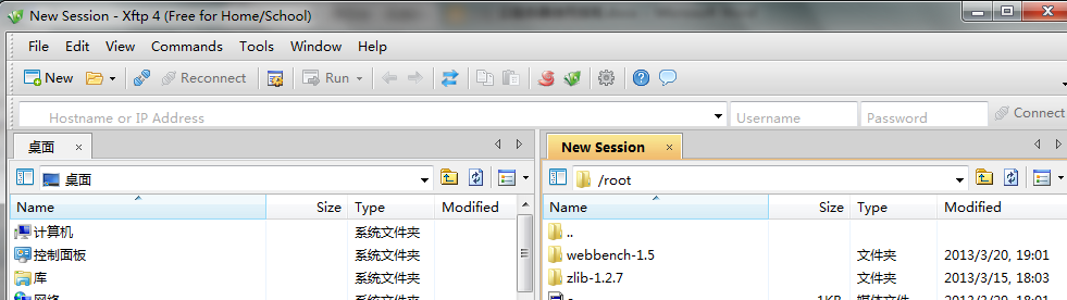 在xftp里新建一个连接,注意协议需要选择SFTP,然后依次填写IP、账户和密码并连接登录。