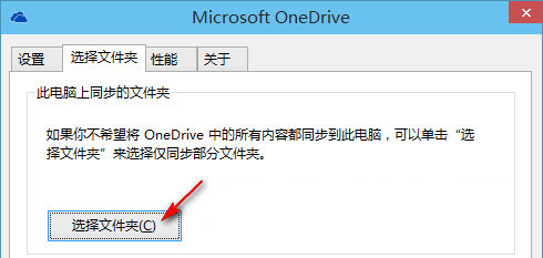 还是刚才的“Microsoft OneDrive”设置窗口,切换到“选择文件夹”选项卡。如图: