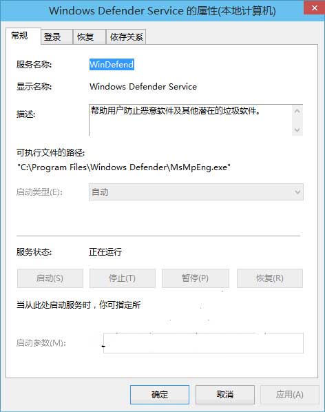 艾薇百科开始怀疑这个绿色版VMware Workstation是不是含有恶意软件,可是查看之后,又没有发现问题。既然是提示“无法启动服务”,那艾薇百科首先就想到去查看一下Windows Denfender相关的服务是否没有开启。于是就打开“服务管理器”(不知道怎样打开Win10服务服务管理器的请看:怎样打开Windows 10的服务管理器?),在其中找到了Windows Denfender Service服务,却发现该服务显示为正在运行。艾薇百科想重启该服务,却发现该服务的“启动、停止、重新启动”等按钮均处于灰色不可用状态。如图: