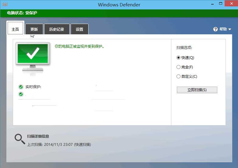 然后再重新打开Windows Defender,点击“启用”按钮,应该就能够正常启用实时保护了。如图:
