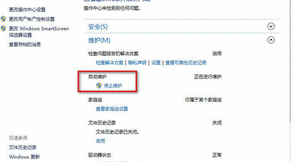点击开始,打开控制面板---所有控制面板项---操作中心---自动维护。