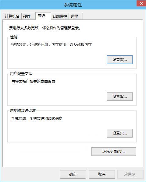 在左侧导航列表中选择“高级系统设置”,打开“系统属性”窗口,默认显示的就是“高级”选项卡。如图: